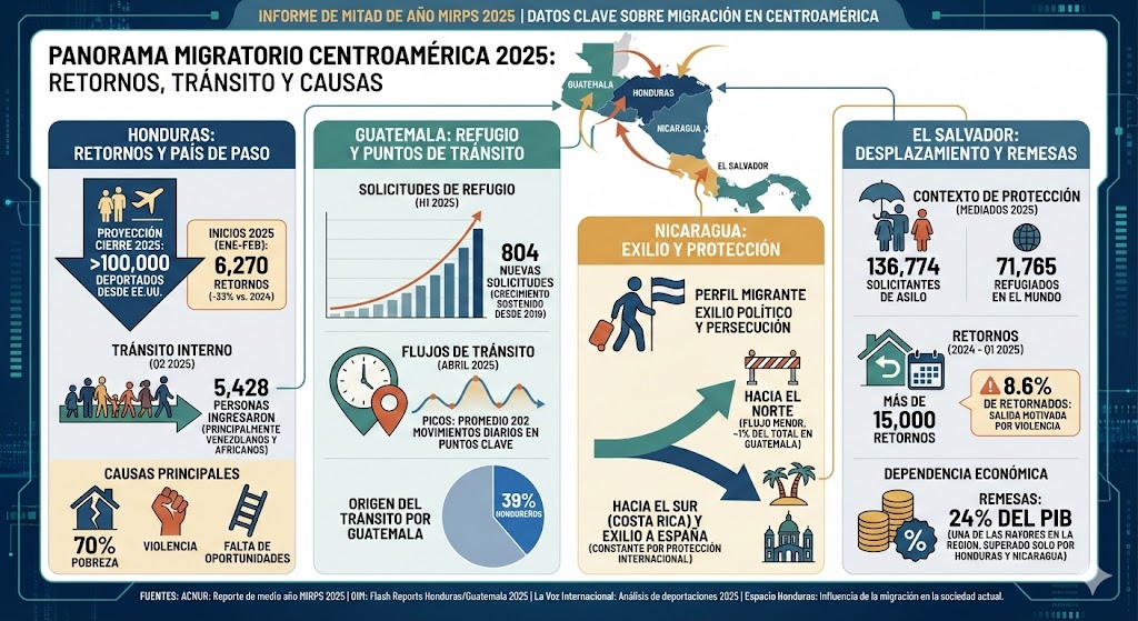 Las hondureñas representan el 48% del flujo migratorio total. Se estima que 48,000 habrán sido retornadas o deportadas en 2025, enfrentando riesgos de violencia al volver. En Honduras el 70% de la población vive en pobreza.